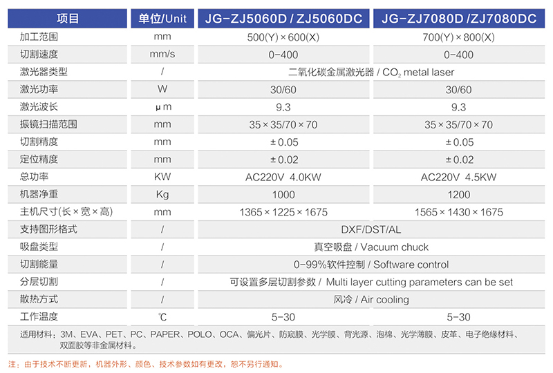 适用材料范围: 3M/PET/PC/PAPER/OCA/防窥膜/防爆膜/背光源/扩散/泡棉/光学薄膜/电子绝缘材料/皮革/双面胶/特殊材料